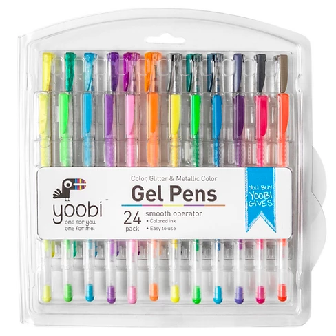 Smooth Operator Your favorite Yoobi items, DOUBLED! We know how much you loved our 12 pack of gel pens, so we're giving you twice that in this awesome 24 pack. Try 12 new colors to brighten up your notebook this season. You buy, Yoobi gives - For every Yoobi item you purchase, a Yoobi item will be donated to a classroom in need, right here in the U.S.