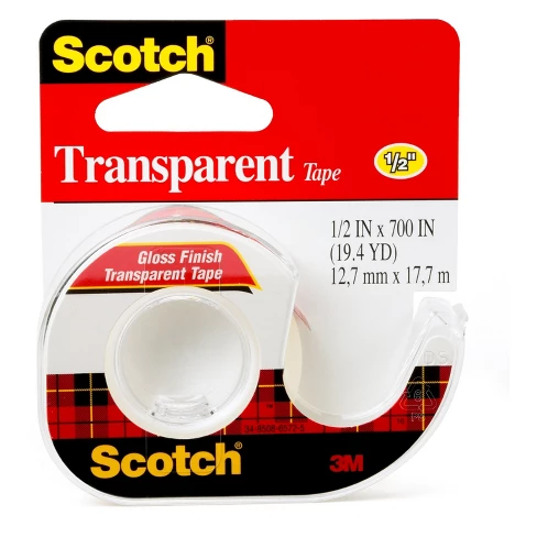 The benefits of Scotch Transparent Tape are clear: Ideal for basic jobs around the house. An economical tape with excellent holding power; completely transparent and won't yellow with age. A clear solution built from trusted 3M adhesive technology. And because the unique dispenser is included-Scotch Transparent Tape glides out smoothly and cuts easily, getting only the tape you need without waste. Great value. Great tape. Seems clear-Scotch Transparent Tape is the tape to get.